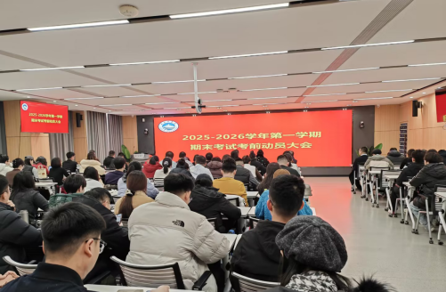 2025年12月31日下午,学校在虚拟仿真实训中心(4315)隆重召开2025-2026学年第一学期期末诚信考试动员大会。本次大会以“强化考试规范管理,筑牢诚信考试防线”为主题,旨在全面部署期末考试工作,严肃考风考纪,营造公平、公正、诚信的考试环境。大会采用线上线下结合的方式,主会场设在虚仿实训中心,各二级学院会议室和专业教室设分会场,全体教师和在校学生全员参与。会议由教务处副处长王磊主持,副校长李占军出席并作总结讲话,教务处、各学院院长、党总支副书记、师生代表等参加主会场会议。