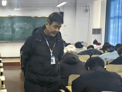 为深入贯彻落实学校考风考纪建设要求,强化考试全过程、全链条管理,2026年1月12日,在本学期期末考试统考首日,校党委书记李军、校长刘连新带队,副校长李占军、党委副书记邢林、副校长任传波等校领导深入各考场开展全覆盖巡考工作。党委办公室、校长办公室、教务处、学生工作部、质量监控与评估中心等职能部门负责人共同参与。